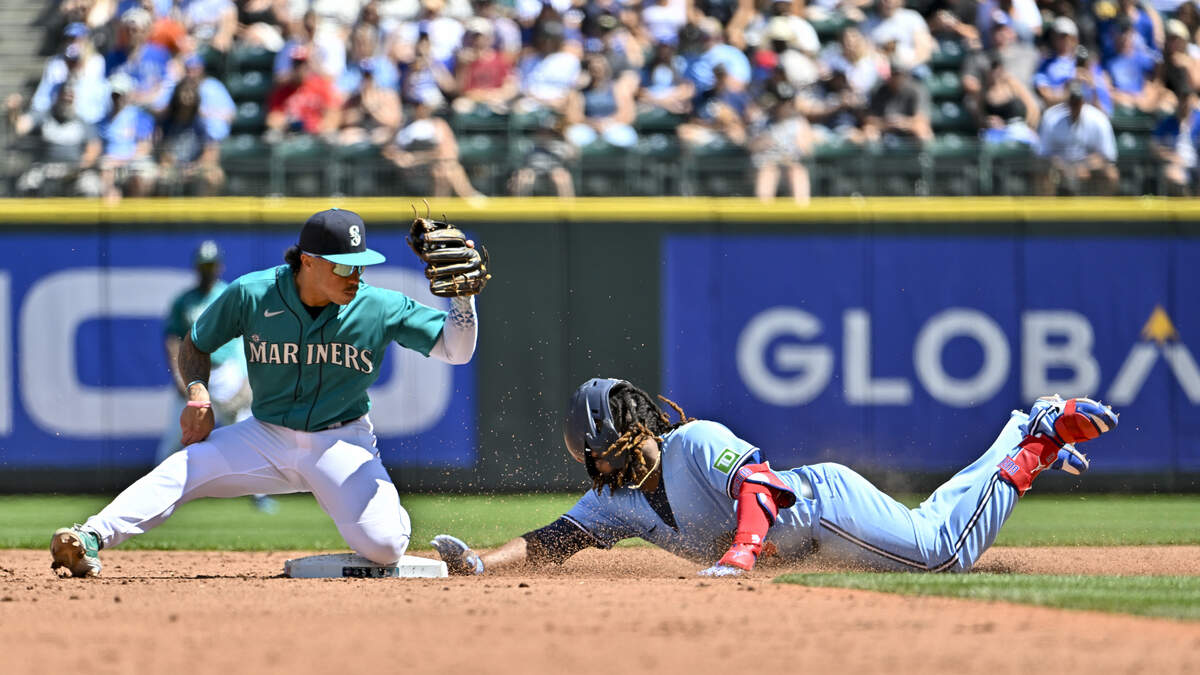 After Ty France was hit by a pitch from Nate Pearson, Dylan Moore doubled to put two in scoring position with one out. Hawaii-native Kolten Wong ripped an RBI single to right. He then stole second with J.P. Crawford at the dish, who dribbled a double just fair past the sliding Guerrero Jr at first base. This scored Moore and Wong, tying the game at seven.