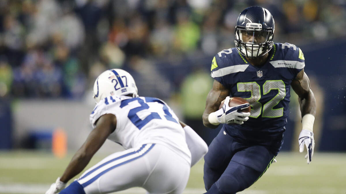 Photo Credit: SEATTLE, WA - OCTOBER 01: Running back Chris Carson #32 of the Seattle Seahawks rushes against Nate Hairston #27 of the Indianapolis Colts in the third quarter of the game at CenturyLink Field on October 1, 2017 in Seattle, Washington. (Photo by Jonathan Ferrey/Getty Images)