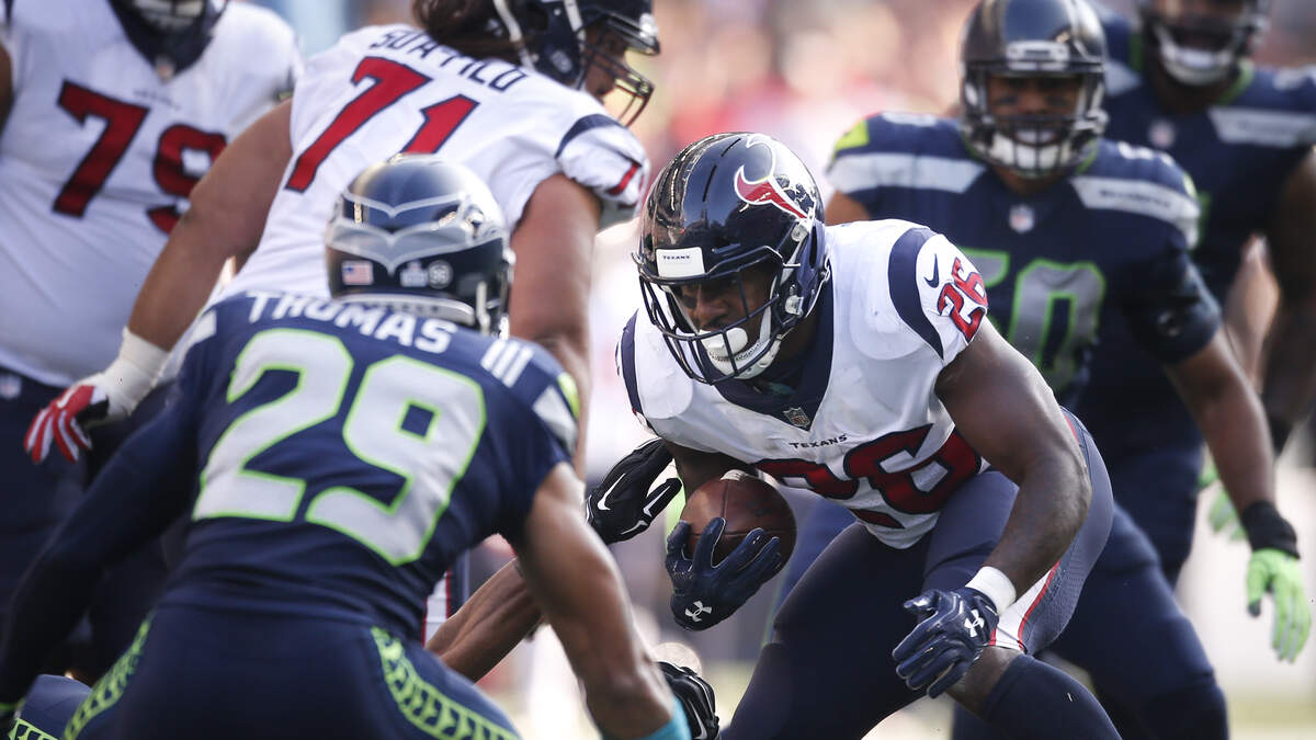 Photo Credit: SEATTLE, WA - OCTOBER 29: Running back Lamar Miller #26 of the Houston Texans rushes against free safety Earl Thomas #29 of the Seattle Seahawks during the third quarter of the game at CenturyLink Field on October 29, 2017 in Seattle, Washington. (Photo by Otto Greule Jr/Getty Images)