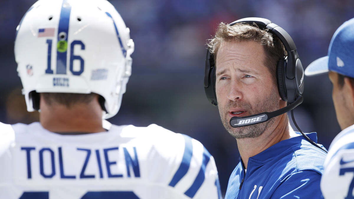 Photo Credit: INDIANAPOLIS, IN - AUGUST 13: Indianapolis Colts quarterbacks coach Brian Schottenheimer talks to Scott Tolzien #16 during a preseason game against the Detroit Lions at Lucas Oil Stadium on August 13, 2017 in Indianapolis, Indiana. (Photo by Joe Robbins/Getty Images)