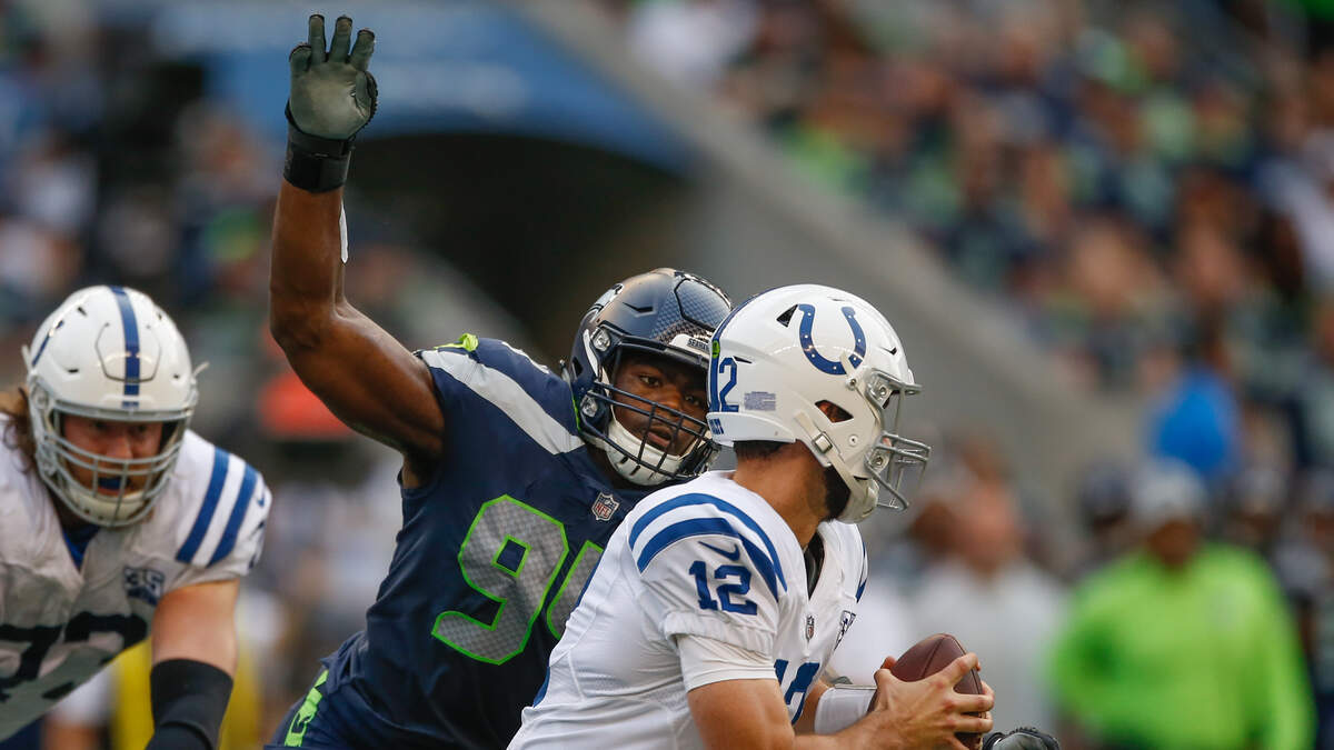 Photo Credit: SEATTLE, WA - AUGUST 09: Quarterback Andrew Luck #12 of the Indianapolis Colts scrambles under pressure from defensive end Rasheem Green #94 of the Seattle Seahawks at CenturyLink Field on August 9, 2018 in Seattle, Washington. (Photo by Otto Greule Jr/Getty Images)