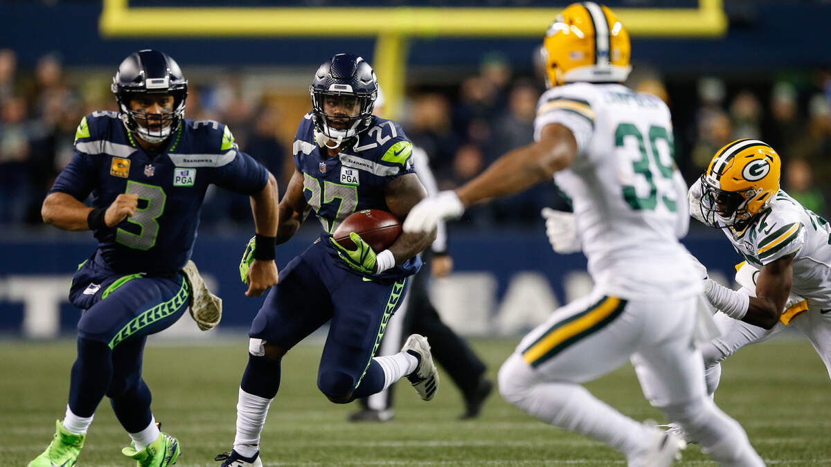 Photo Credit: SEATTLE, WA - NOVEMBER 15: Russell Wilson #3 of the Seattle Seahawks runs out front to block Ibraheim Campbell #39 of the Green Bay Packers for Mike Davis #27 of the Seattle Seahawks at CenturyLink Field on November 15, 2018 in Seattle, Washington. (Photo by Otto Greule Jr/Getty Images)