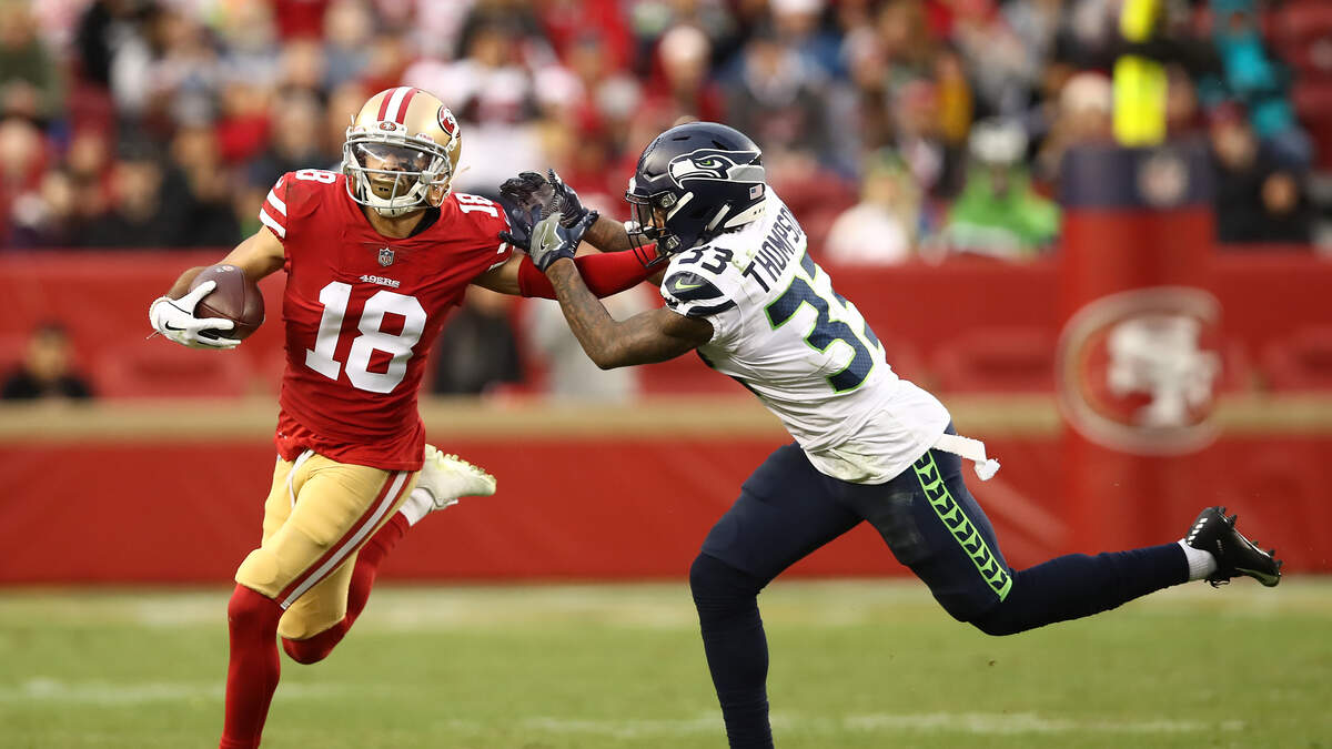 Photo Credit: SANTA CLARA, CA - DECEMBER 16: Dante Pettis #18 of the San Francisco 49ers runs after a catch against Tedric Thompson #33 of the Seattle Seahawks during their NFL game at Levi's Stadium on December 16, 2018 in Santa Clara, California. (Photo by Ezra Shaw/Getty Images)