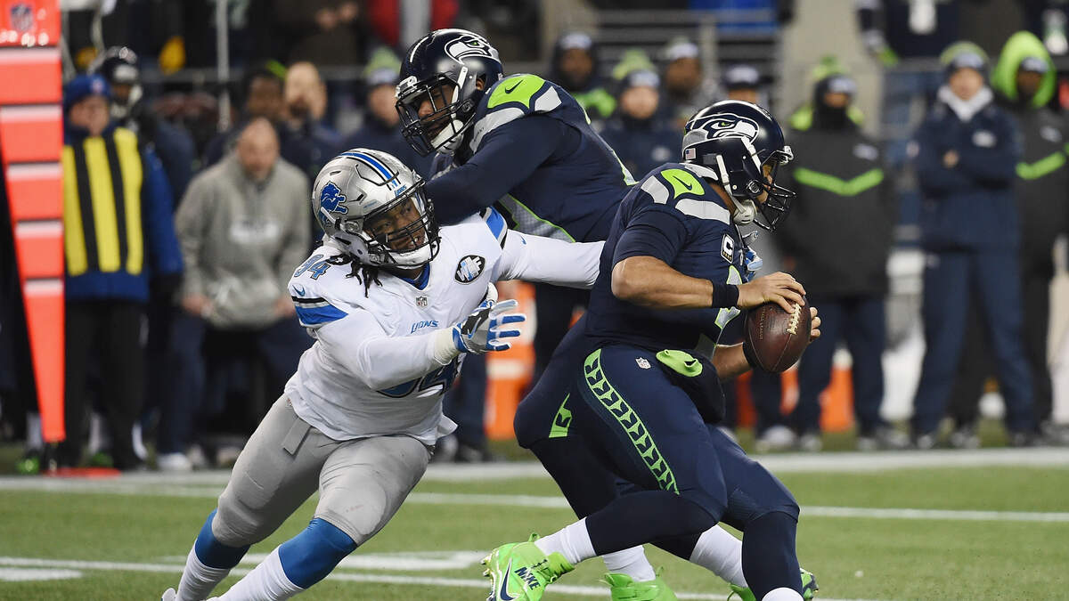 Photo Credit: SEATTLE, WA - JANUARY 07: Ezekiel Ansah #94 of the Detroit Lions attempts to tackle Russell Wilson #3 of the Seattle Seahawks during the first half of the NFC Wild Card game at CenturyLink Field on January 7, 2017 in Seattle, Washington. (Photo by Steve Dykes/Getty Images)
