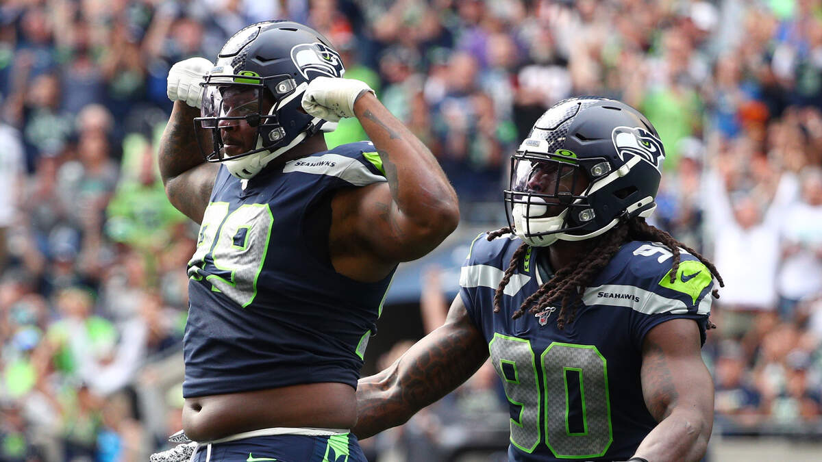 Photo Credit: SEATTLE, WASHINGTON - SEPTEMBER 08: Quinton Jefferson #99 celebrates alongside Jadeveon Clowney #90 of the Seattle Seahawks after sacking Andy Dalton #14 of the Cincinnati Bengals in the second quarter during their game at CenturyLink Field on September 08, 2019 in Seattle, Washington. (Photo by Abbie Parr/Getty Images)