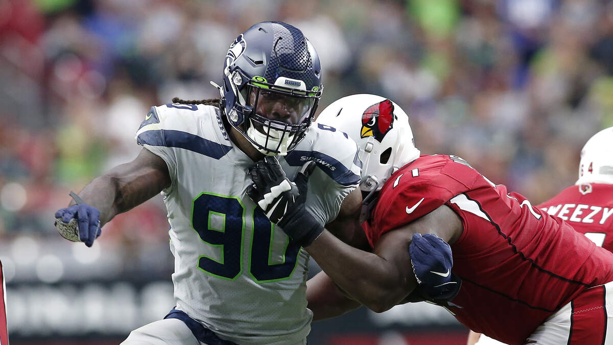 Photo Credit: GLENDALE, ARIZONA - SEPTEMBER 29: Defensive end Jadeveon Clowney #90 of the Seattle Seahawks battles through the block of offensive lineman Justin Murray #71 of the Arizona Cardinals during the second half of the NFL football game at State Farm Stadium on September 29, 2019 in Glendale, Arizona. (Photo by Ralph Freso/Getty Images)