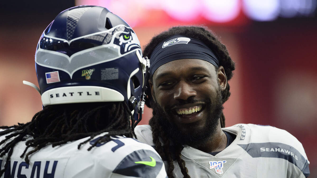 Photo Credit: GLENDALE, ARIZONA - SEPTEMBER 29: Outside linebacker Jadeveon Clowney #90 of the Seattle Seahawks shares a laugh with defensive end Ezekiel Ansah #94 during the NFL game against the Arizona Cardinalsat State Farm Stadium on September 29, 2019 in Glendale, Arizona. The Seattle Seahawks won 27-10. (Photo by Jennifer Stewart/Getty Images)