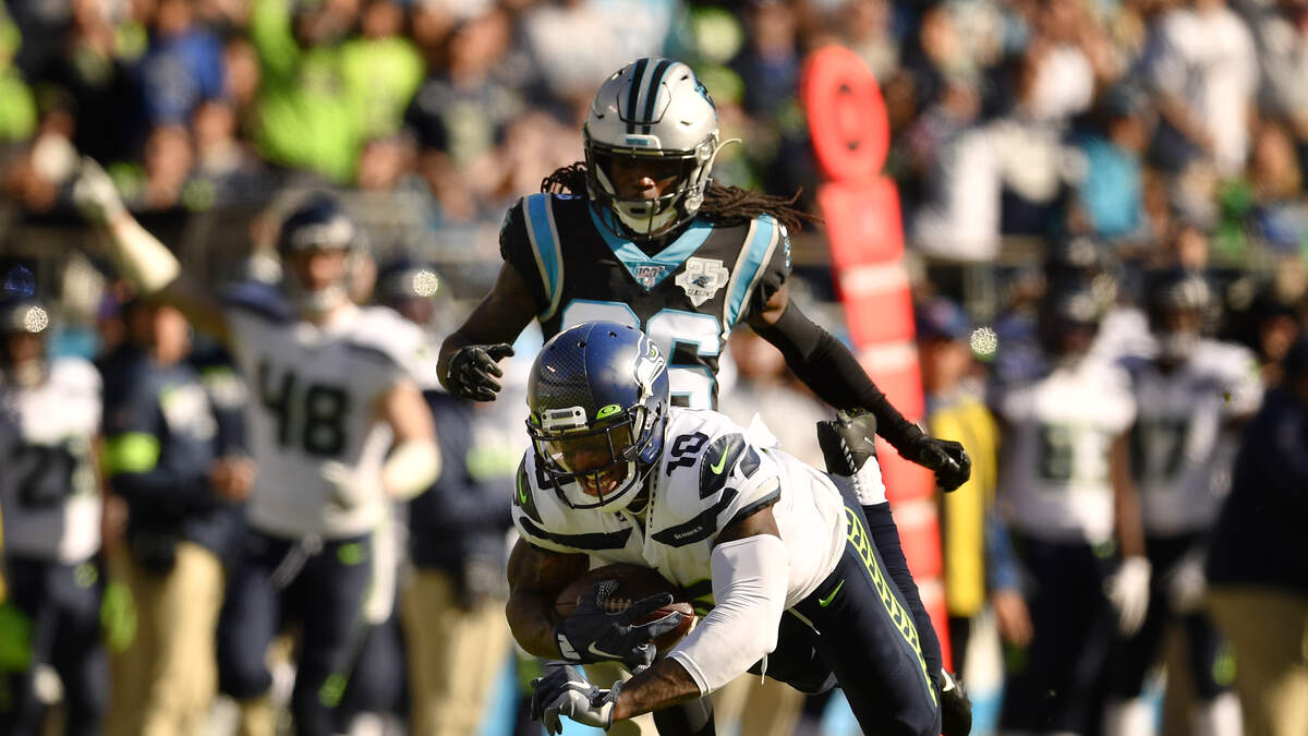 Photo Credit: CHARLOTTE, NORTH CAROLINA - DECEMBER 15: Seattle Seahawks wide receiver Josh Gordon #10 runs the ball as Carolina Panthers cornerback Donte Jackson #26 tries to defend in the game at Bank of America Stadium on December 15, 2019 in Charlotte, North Carolina. (Photo by Grant Halverson/Getty Images)