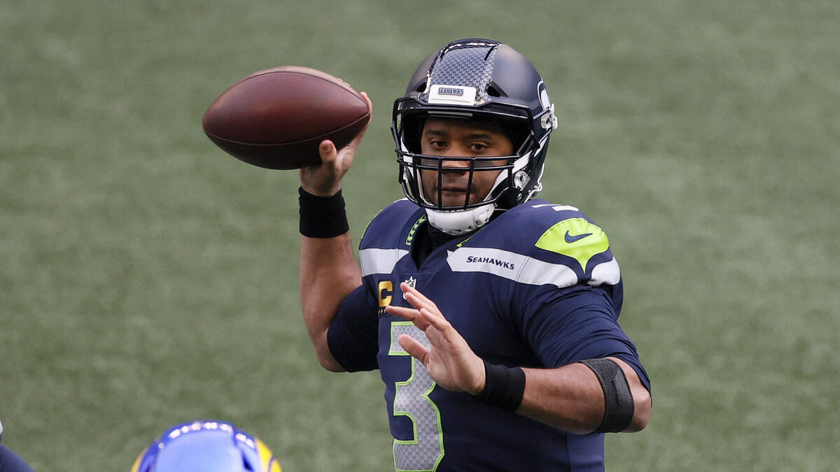 Photo Credit: SEATTLE, WASHINGTON - JANUARY 09: Russell Wilson #3 of the Seattle Seahawks looks to pass against the Los Angeles Rams during the first quarter in an NFC Wild Card game at Lumen Field on January 09, 2021 in Seattle, Washington. (Photo by Steph Chambers/Getty Images)