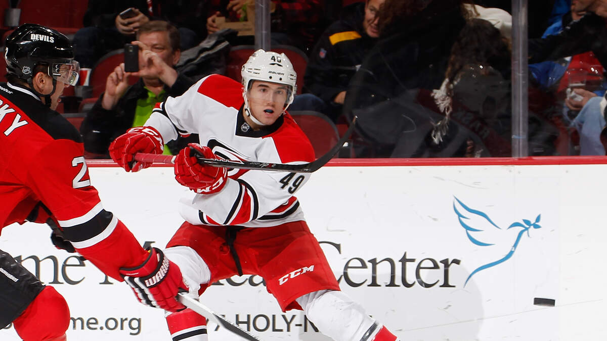 NEWARK, NJ - DECEMBER 23: Victor Rask #49 of the Carolina Hurricanes shoots in an NHL hockey game against the New Jersey Devils at Prudential Center on December 23, 2014 in Newark, New Jersey. Hurricanes won 2-1 in a shootout. (Photo by Paul Bereswill/Getty Images)Photo: Getty Images