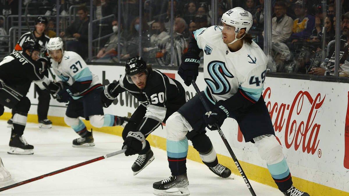 Anze Kopitar then slipped behind the defense and tucked a forehand deke past Philipp Grubauer’s stick side for a 2-0 edge, 4:17 into the second period. The Kraken got back into the game when Daniel Sprong picked up speed through the right wing and uncorked a snap shot past Cal Petersen for his second goal in as many games with the Kraken.