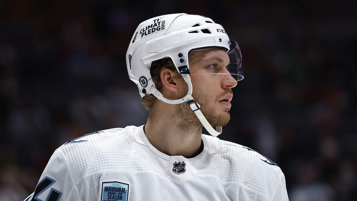ANAHEIM, CALIFORNIA - DECEMBER 15: Jamie Oleksiak #24 of the Seattle Kraken looks on during the first period of a game against the Anaheim Ducks at Honda Center on December 15, 2021 in Anaheim, California. (Photo by Sean M. Haffey/Getty Images)Photo: Getty Images