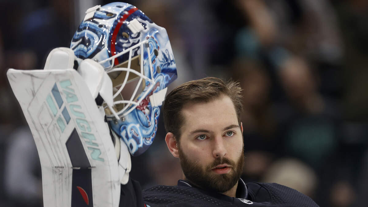 SEATTLE, WASHINGTON - APRIL 29: Chris Driedger #60 of the Seattle Kraken looks on before the game against the San Jose Sharks at Climate Pledge Arena on April 29, 2022 in Seattle, Washington. (Photo by Steph Chambers/Getty Images)Photo: Getty Images
