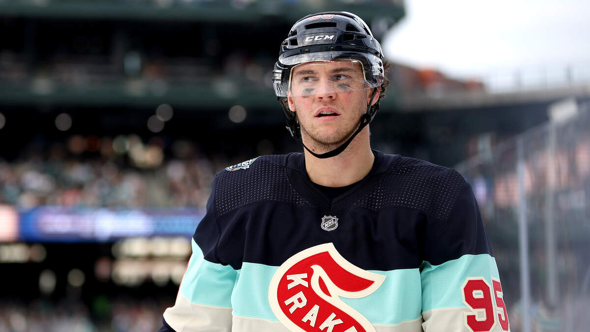 SEATTLE, WASHINGTON - JANUARY 01: Andre Burakovsky #95 of the Seattle Kraken waits for play to begin against the Vegas Golden Knights during the second period at T-Mobile Park on January 01, 2024 in Seattle, Washington. (Photo by Steph Chambers/Getty Images)Photo: Steph Chambers / Getty Images Sport / Getty Images